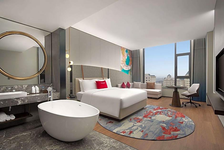 +1 (888) 389-8504Ramada by Wyndham Qingdao Jiaodong International Airport is a 4-star hotel in Qingdao, China. Address: Building 6, No.7 Hang An Road Jiaodong International Airport. Located at the Jiaodong International Airport, the property sits about 25,8mi from Qingdao city center. Rates start from $67.